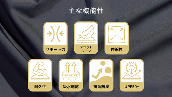 伸縮性トリコット編機による特殊技術『ワープニット製法』を採用し、高い伸縮性を活かした着圧コントロールを実現。筋肉の大きさに合わせて収縮し、無駄な筋肉の振動を抑制することで筋肉の疲労軽減が期待できます。